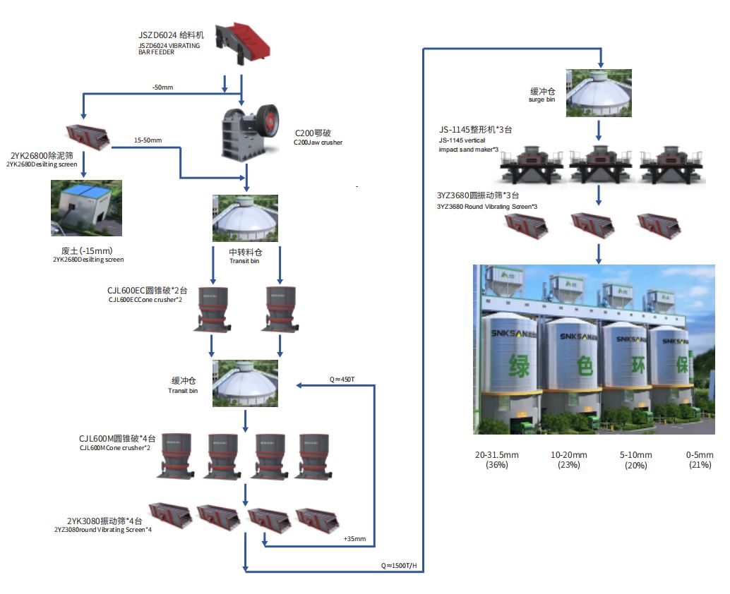 成品料粒徑:0-5mm、5-10mm、10-20mm、20-31.5mm;