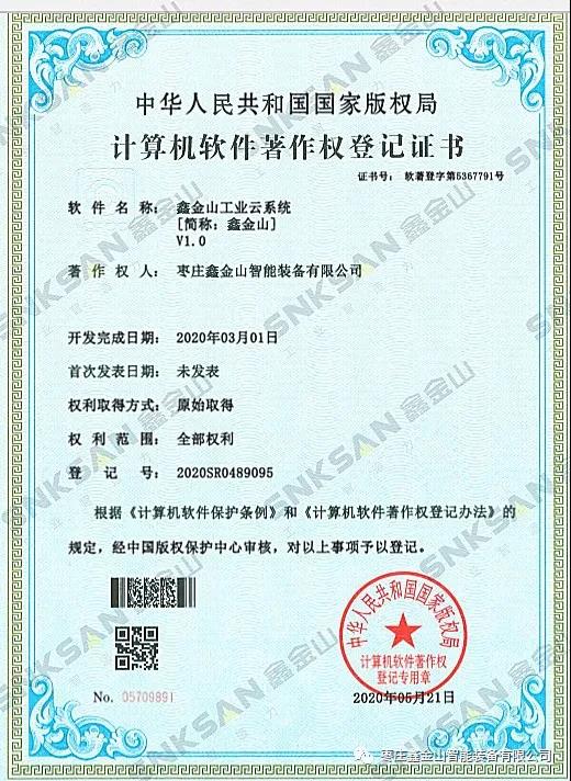 導讀:近日,由棗莊鑫金山智能裝備有限公司自主研發(fā)的鑫金山工業(yè)云系統,順利通過(guò)了軟件測評中心檢測,獲得了由中華人民共和國國家版權局頒發(fā)的計算機軟件著(zhù)作權登記證書(shū)。這是鑫金山公司在科技研發(fā)方面取得的又一項重要成果。