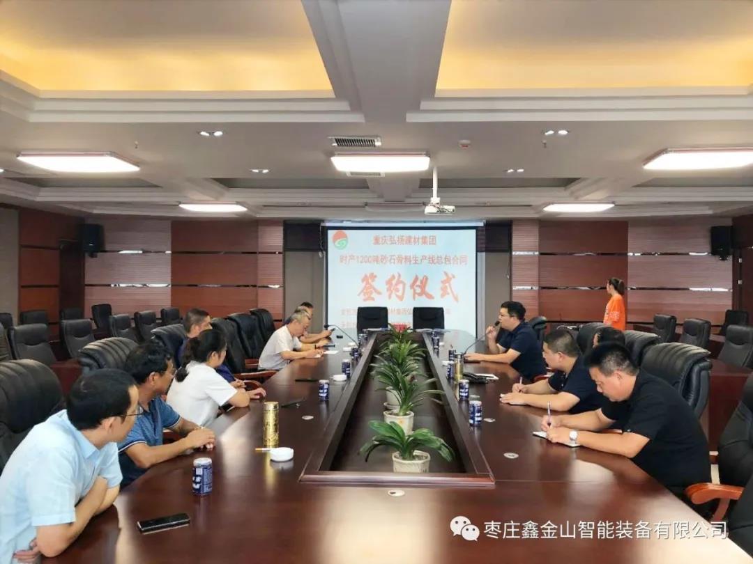 導(dǎo)讀:8月8日9點18分,棗莊鑫金山智能裝備有限公司與重慶弘揚建材集團(tuán)在重慶黔江區(qū)弘揚集團(tuán)總部會議室正式舉行了簽約儀式,成功簽訂EPCO項目合作協(xié)議,開啟了雙方長期戰(zhàn)略合作。