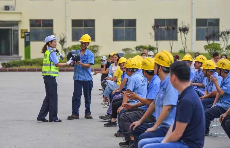 活動現場,民警們通過通俗易懂的語言,并結合近期發(fā)生的案例,自編自演了快板、小品、歌曲、情景劇等寓教于樂的節(jié)目,向園區(qū)工友們宣傳防范電信詐騙、傳授交通安全以及防火防盜等方面的知識,贏得了在場工友們的陣陣掌聲。