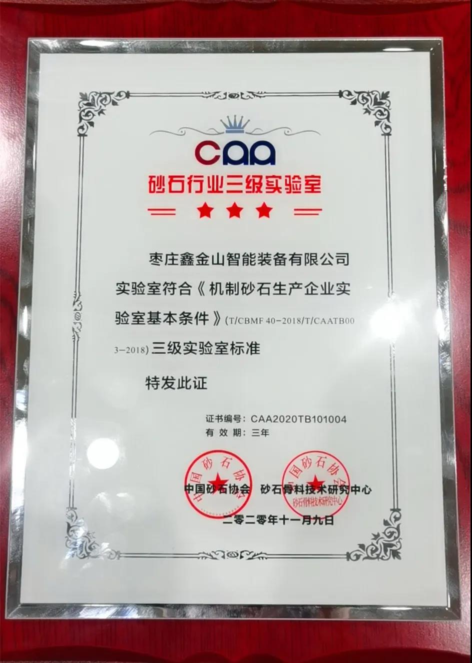 14日當(dāng)天,為表彰優(yōu)秀、樹立典范,引領(lǐng)和推動行業(yè)向著更高層次發(fā)展。在中國砂石協(xié)會年會現(xiàn)場進(jìn)行了一系列盛大的頒獎儀式。儀式上,棗莊鑫金山智能裝備有限公司實驗室被評定為砂石行業(yè)三級(zui高等級)實驗室,董事長孫中巖入選綠色礦山建設(shè)專家?guī)鞂<摇?/p>