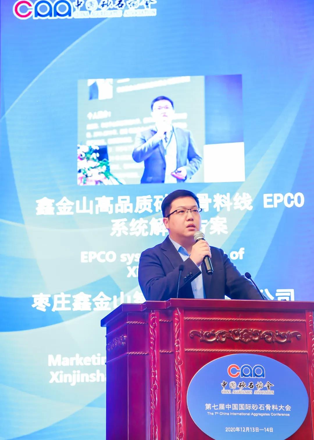 棗莊鑫金山智能裝備有限公司胡振霖作題為《鑫金山高品質(zhì)砂石骨料線EPCO系統(tǒng)解決方案》的主題報告。作為中國高端砂石裝備制造商,鑫金山根據(jù)市場趨勢和客戶需求為礦山企業(yè)提供現(xiàn)場勘探、設(shè)計、礦石檢測、裝備加工制造、安裝、運營服務(wù)等EPCO總包模式,以高端化、智能化、規(guī)?;氖袌龆ㄎ?,為客戶提供系統(tǒng)集成服務(wù)。