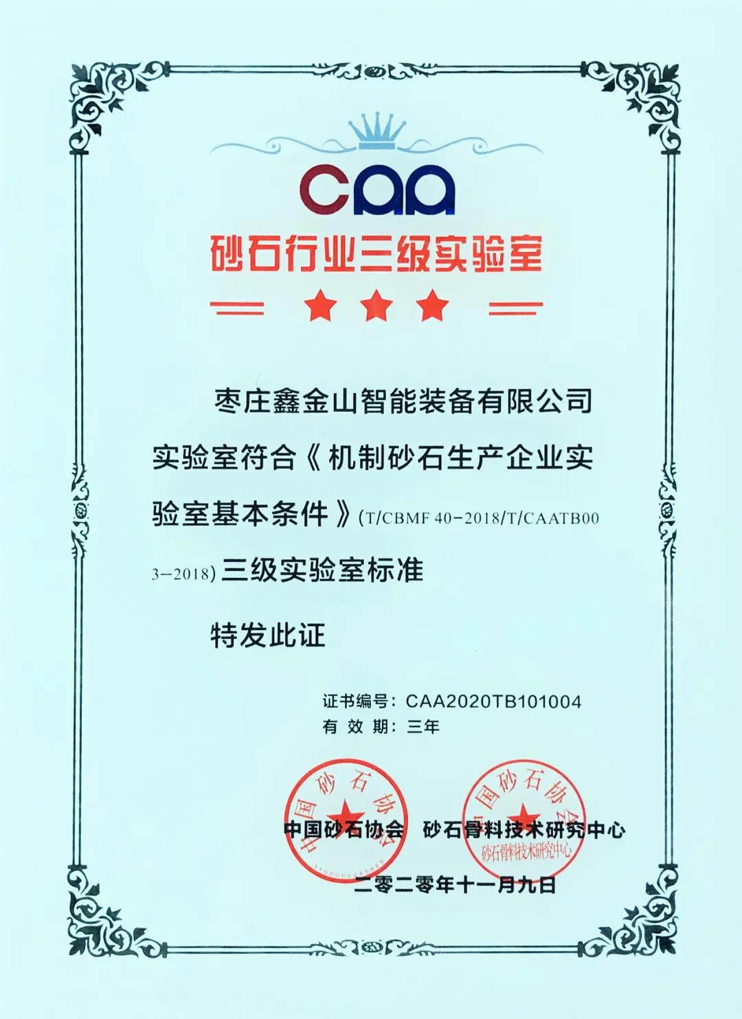 導(dǎo)讀:近日,第七屆中國(guó)國(guó)際砂石骨料大會(huì)在湖北武漢落下帷幕。會(huì)上,經(jīng)中國(guó)砂石協(xié)會(huì)與砂石骨料技術(shù)研究中心聯(lián)合認(rèn)定,棗莊鑫金山智能裝備有限公司試驗(yàn)中心符合《機(jī)制砂石生產(chǎn)企業(yè)實(shí)驗(yàn)室基本條件》三級(jí)實(shí)驗(yàn)室標(biāo)準(zhǔn),被認(rèn)定為國(guó)內(nèi)砂石行業(yè)三級(jí)(zui高等級(jí))實(shí)驗(yàn)室。這是砂石行業(yè)實(shí)驗(yàn)室zui高級(jí)別殊榮,標(biāo)志著鑫金山在助推砂石行業(yè)高質(zhì)量發(fā)展的新征程上,又邁出了堅(jiān)實(shí)的一步。