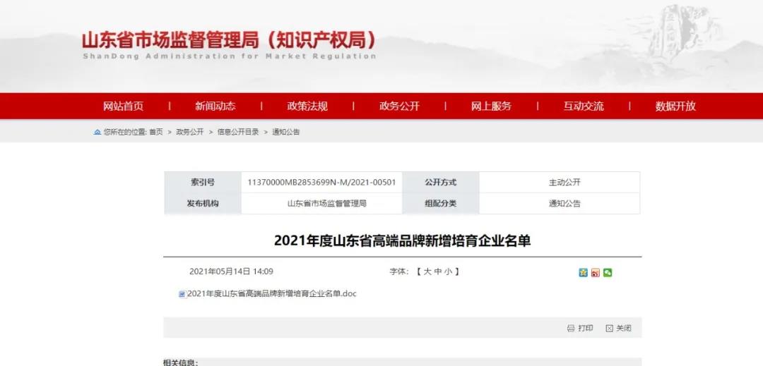 導讀:為推動供給側結構性改革,深入推動高端品牌培育工作。近年來,山東省大力實施品牌強省戰(zhàn)略,著力在全省范圍內培育一批質量高、效益高、誠信度高、美譽度高和關聯度高的具有試點示范效應的制造業(yè)高端品牌企業(yè)。